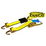Reata en Poliéster Tipo Niñera de 2" ancho x 3.2 mts. de largo con Ratchet , Gancho y Tope triple para transporte de vehículos (resistencia a la rotura = 11.000 lbs 5.000 kgs) (Fuerza de tensión Ratchet: 5.500 kgs) (Fuerza de elevación Ratchet: 11.000 kgs.)
